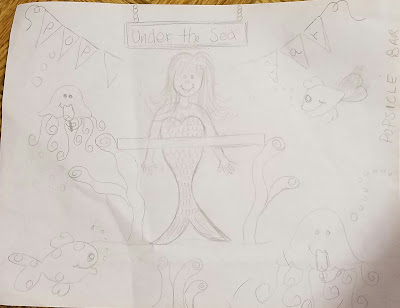 It would be politically incorrect for me to share that my mermaid looks like a drag-queen mermaid, so I will not say that, because I will NOT be unkind, and what?  Me? Make fun of my own skills?!!  Ne-va!!